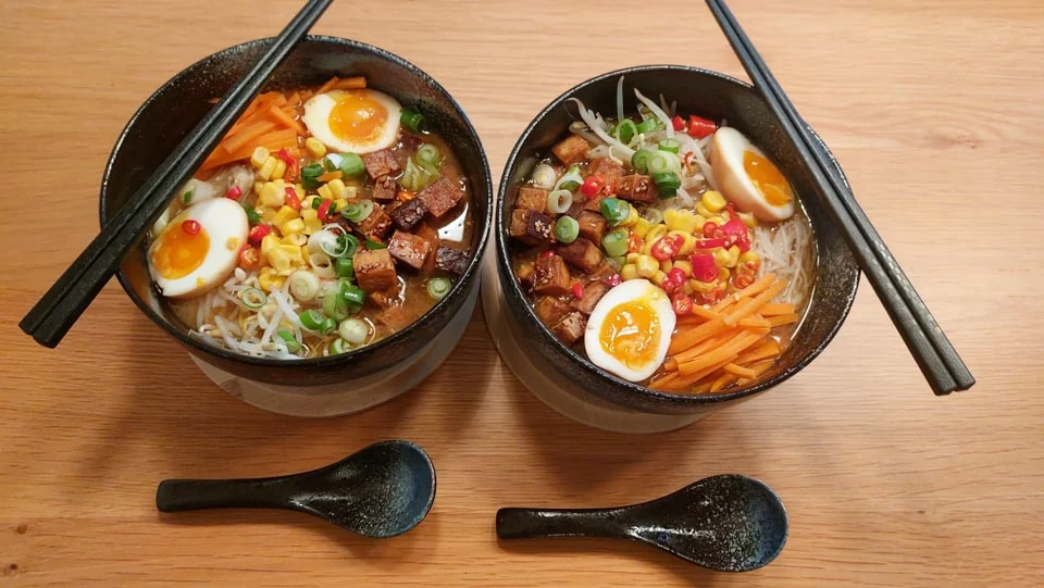 Und so geht’s: 2 TL Hefeextrakt, 3 EL Sojasauce, 4 EL Tomatenmark, 3 EL Balsamico-Essig, 3 EL Olivenöl, 4 TL Paprikapulver, Salz, Pfeffer und 300 ml Wasser zu einer Marinade rühren. Die groben Soja Schnetzel unterheben und alles über Nacht ziehen lassen. Das Sojafleisch in Olivenöl ca. 5 Minuten scharf anbraten. Zwiebeln und Paprika hinzugeben und weitere 5 Minuten anbraten. 3 EL Tomatenmark unterrühren, dann den Knoblauch dazu. Mit 3 TL Paprikapulver und Kräutern eurer Wahl würzen, dann mit 500 ml Rotwein ablöschen. Alles mindestens 30 Minuten köcheln lassen und gelegentlich rühren. Dabei schrittweise Wasser hinzugeben, bis das Gulasch die gewünschte Konsistenz erreicht. Wenn es zu flüssig wird, einfach länger einkochen lassen. Mit Salz, Pfeffer und Paprikapulver abschmecken und genießen