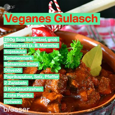 In diesem veganen Gulasch sorgt Hefeextrakt für den Fleischgeschmack. Mit diesem Trick konnte Sebastian Lege unsere Testesser hinters Licht führen.