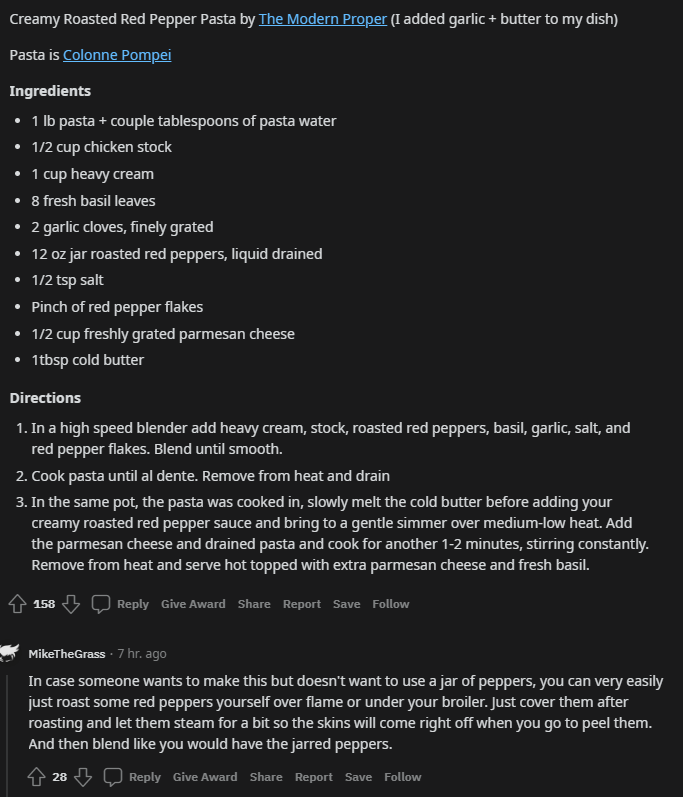![r/food - [Homemade] Creamy roasted red pepper pasta](https://preview.redd.it/tzql2puag6f91.png?width=960&crop=smart&auto=webp&s=73768255eaa73766ac3c3602b18f0fcc58e9bf7e)